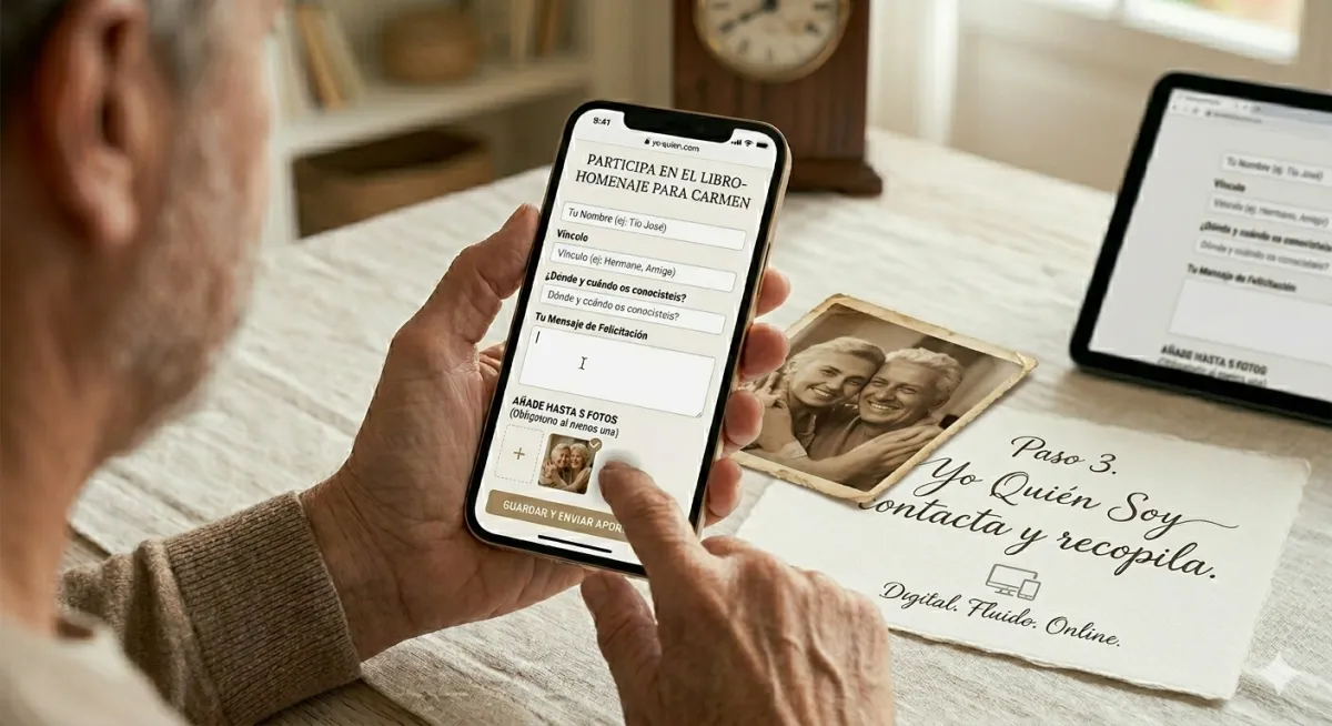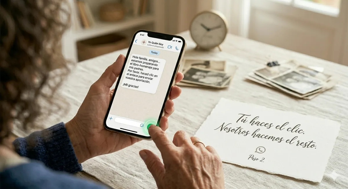 No. Tú solo das el primer paso enviando el mensaje inicial por WhatsApp. Después, Yo Quién Soy se pone en contacto directamente con amigos y familiares para recoger sus aportaciones.